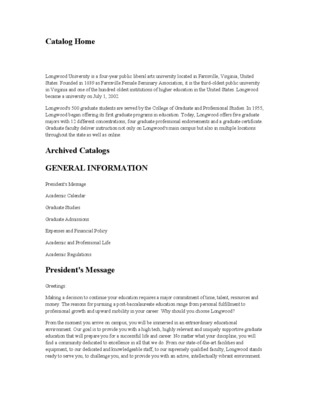 • Longwood University Graduate Catalog 2010-2011 by Longwood University