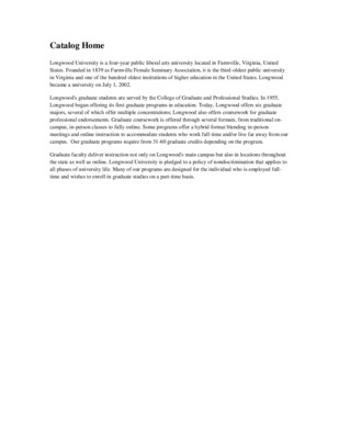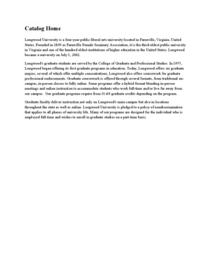 • Longwood University Graduate Catalog 2005-2006 by Longwood University